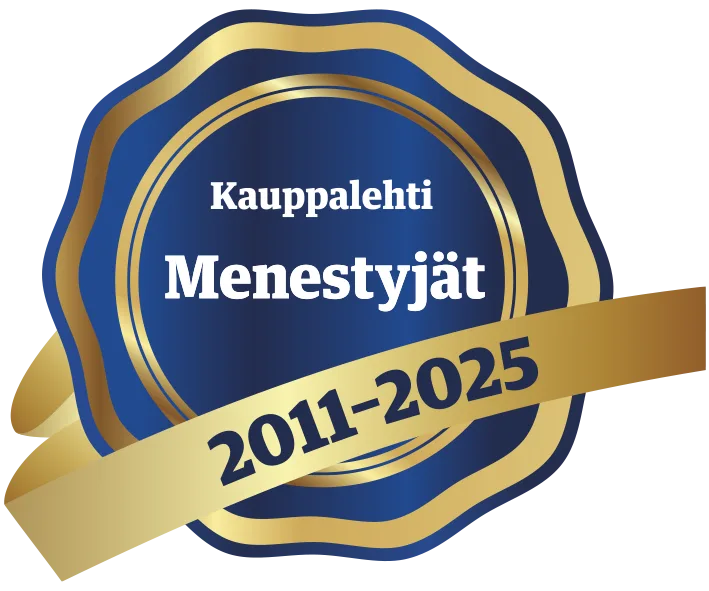 Menestyjä-yrityksenä kuulumme joukkoon, jonka talousanalytiikan ammattilainen on todennut suoriutuvan vertaisiaan paremmin. Menestyjä-merkki on laadun ja luotettavuuden tae.